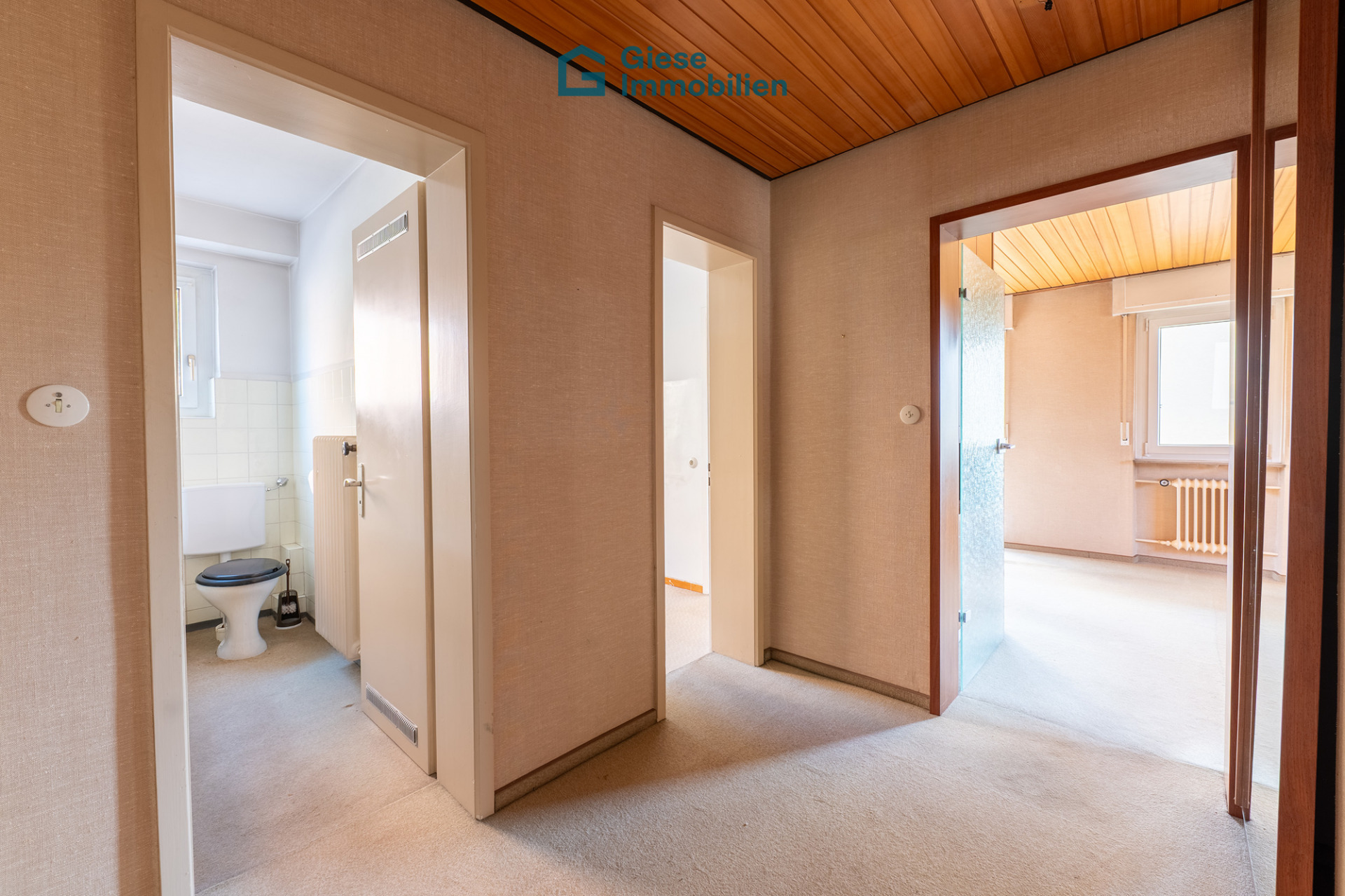 Das helle Gartengeschoss bietet drei zum Garten hin orientierte Zimmer sowie ein WC mit Waschbecken – ideal als eigener Bereich für größere Kinder, Gäste oder als separate Einheit. Ein Bad oder eine kleine Küche könnten hier noch problemlos ergänzt werden; auch ein direkter Gartenzugang ließe sich realisieren.
