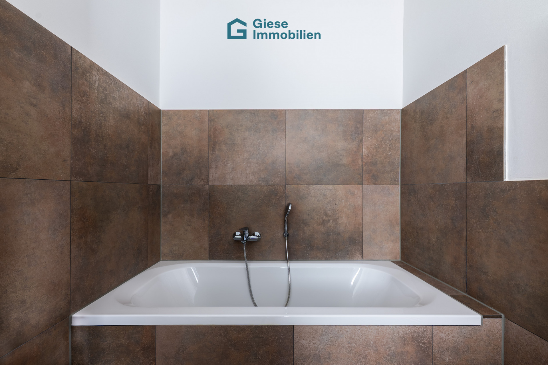 Die maßgefertigte Einbauküche überzeugt durch hochwertige Materialien, moderne Geräte und ein durchdachtes Design, das Kochen zum Vergnügen macht. Sie fügt sich nahtlos in den Wohnbereich ein und wird schnell zum kommunikativen Mittelpunkt der Wohnung. Das stilvoll gestaltete Badezimmer mit zwei Waschtischen, Badewanne und großformatigen Fliesen bietet einen eleganten Rückzugsort, der Komfort und Wohlfühlatmosphäre perfekt vereint.