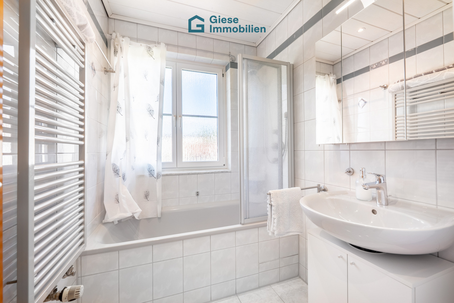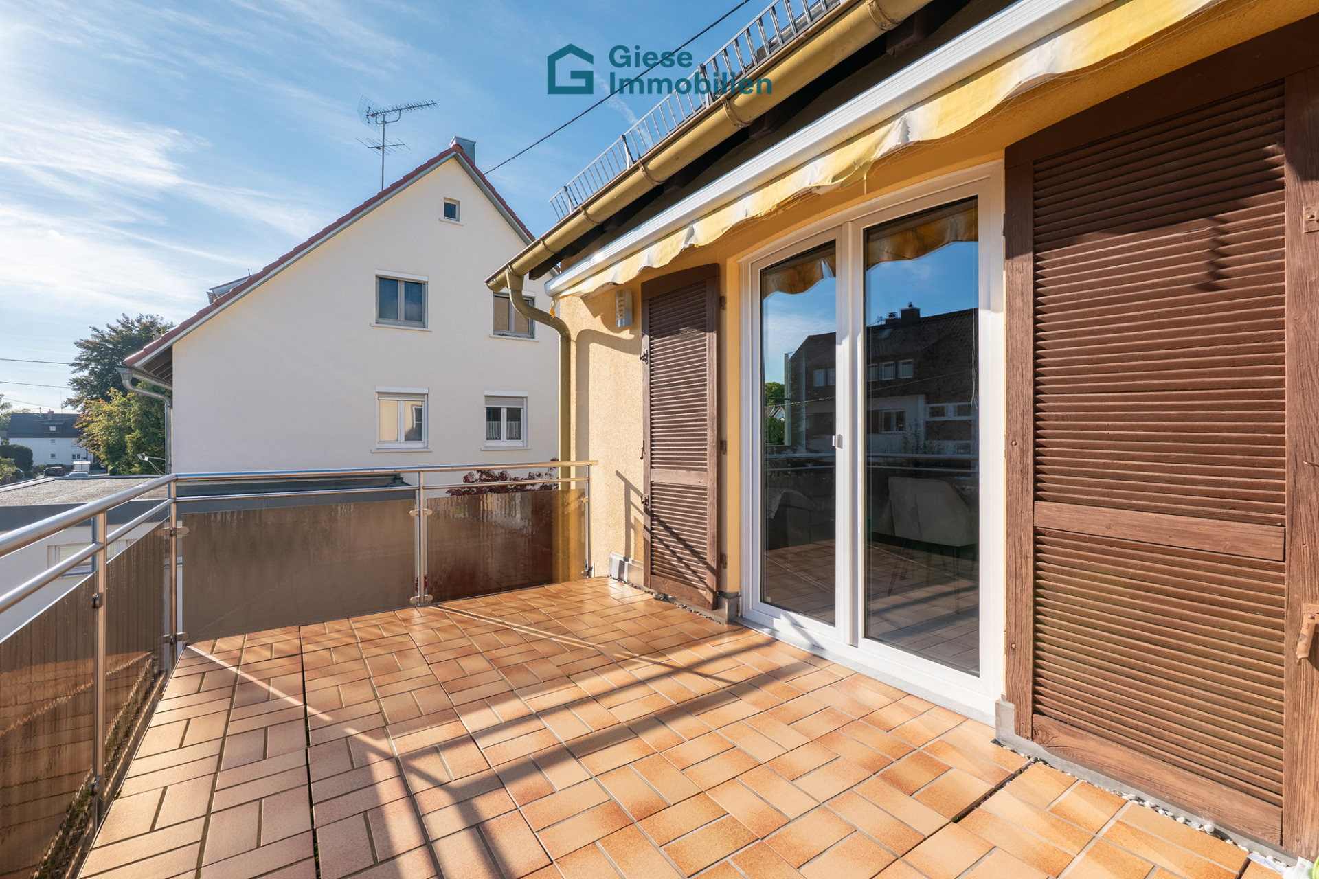 Beim Betreten der modernen Wohnung gelangen Sie in einen zentralen Flur, von dem alle Räume aus erreichbar sind. Das Wohnzimmer bietet eine gute Größe und wirkt dank der vielen Fenster hell und einladend. Von diesem Zimmer aus haben Sie zudem einen direkten Zugang zum großen Süd-West-Balkon, welcher genug Platz für eine Sitzecke oder einen Tisch mit Stühlen bietet. Die Markise bietet zudem Schatten an sonnigen Tagen.