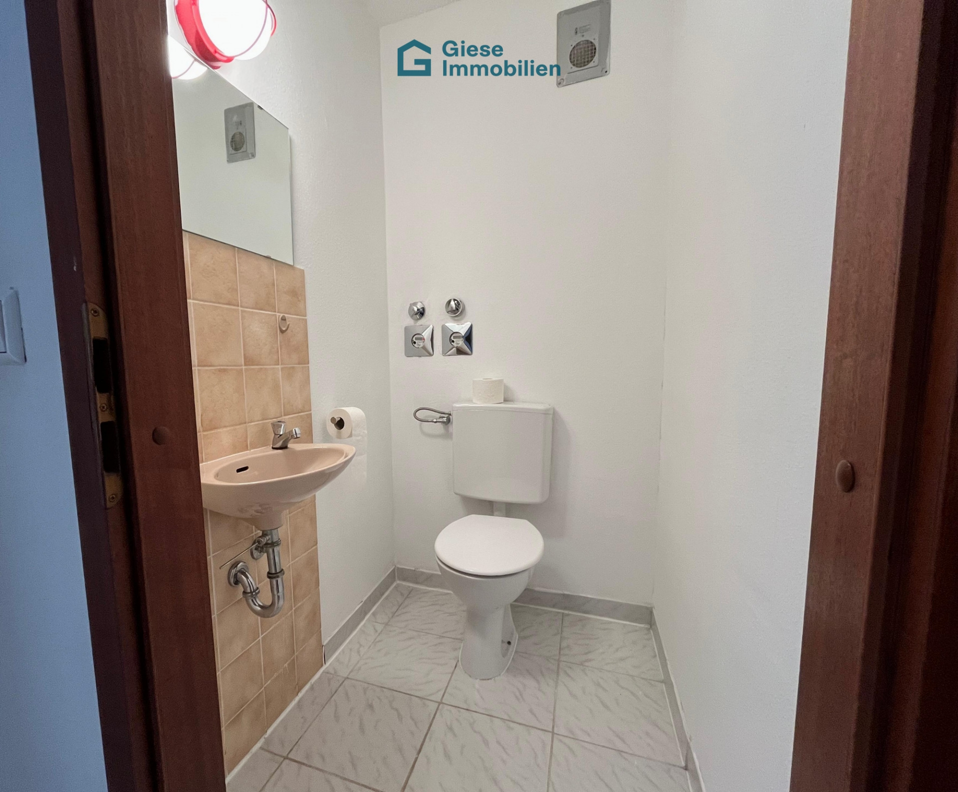 Das Badezimmer mit Badewanne lädt zum Entspannen ein, während das separate WC zusätzlichen Komfort für Bewohner und Gäste schafft.