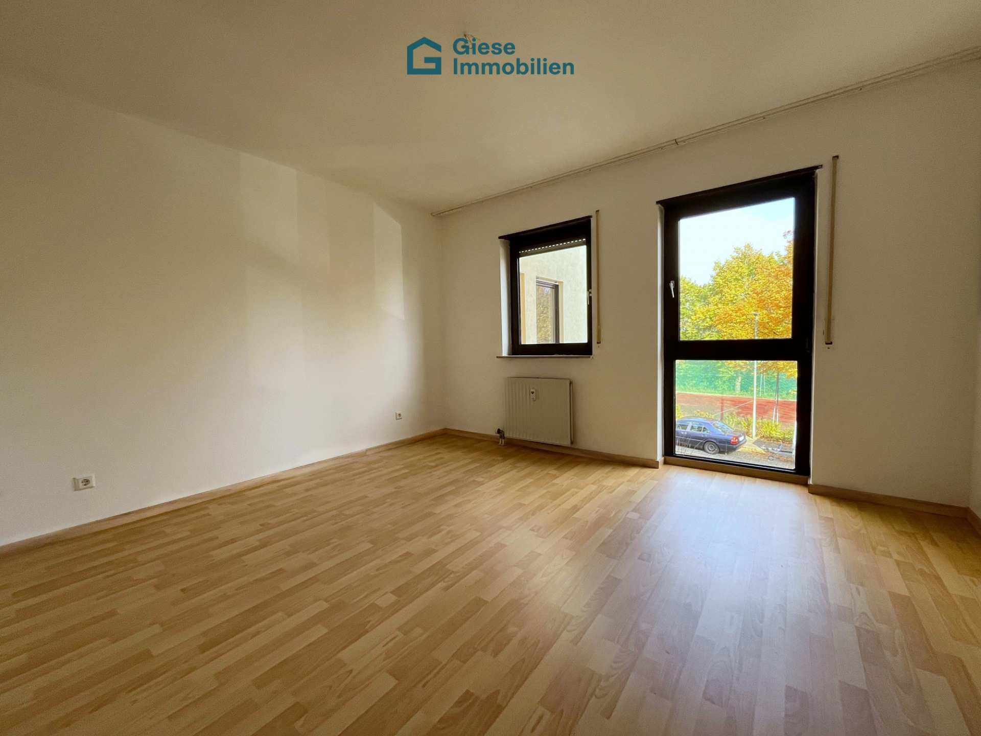 Ein Stück weiter eröffnet sich das großzügige Schlafzimmer mit einem bodentiefen Fenster, das viel Tageslicht hineinlässt und so eine ruhige, helle Wohlfühloase schafft. Praktisch ergänzt wird der Grundriss durch einen Abstellraum, der zusätzlichen Stauraum für den Alltag bietet.
