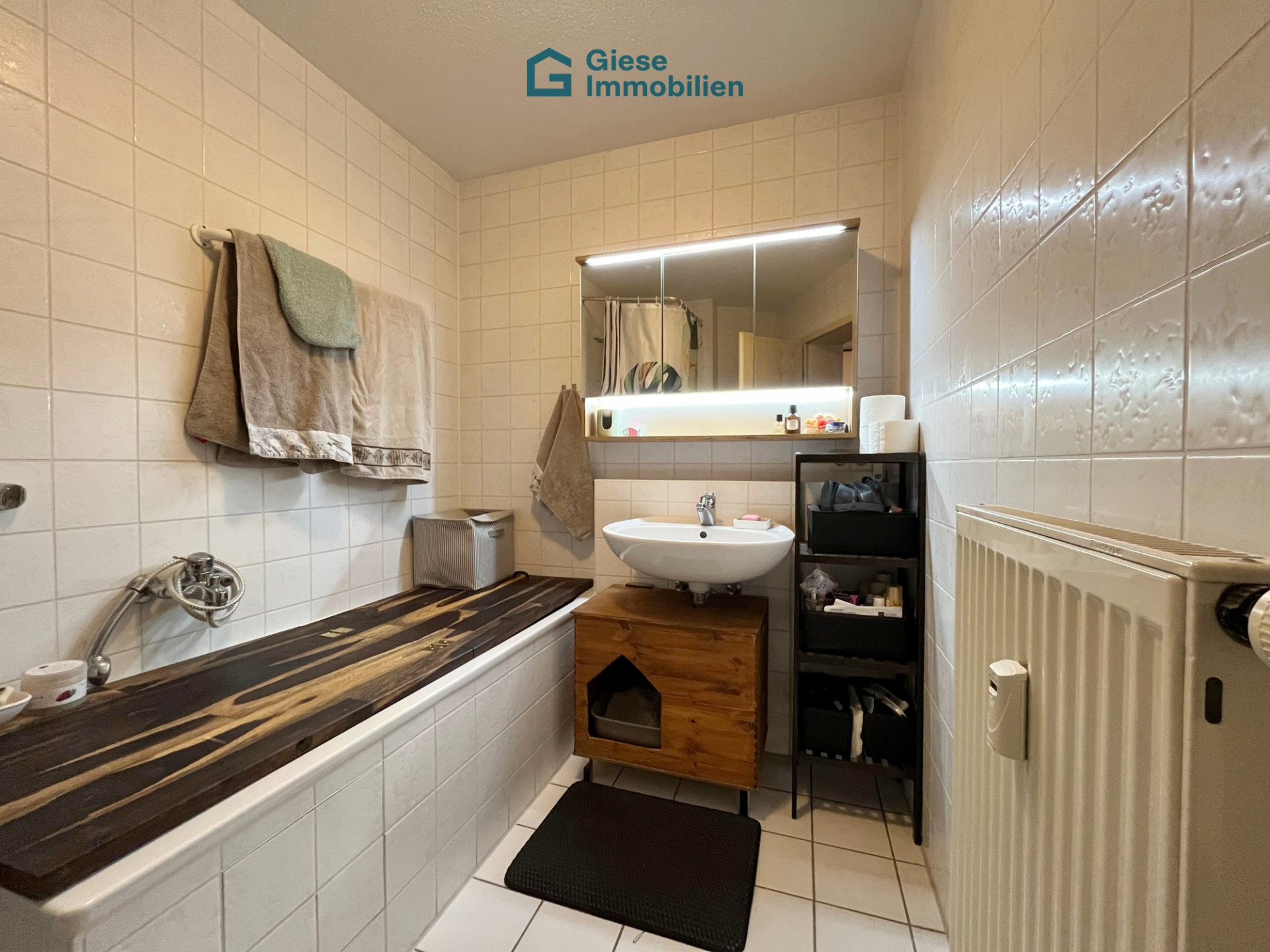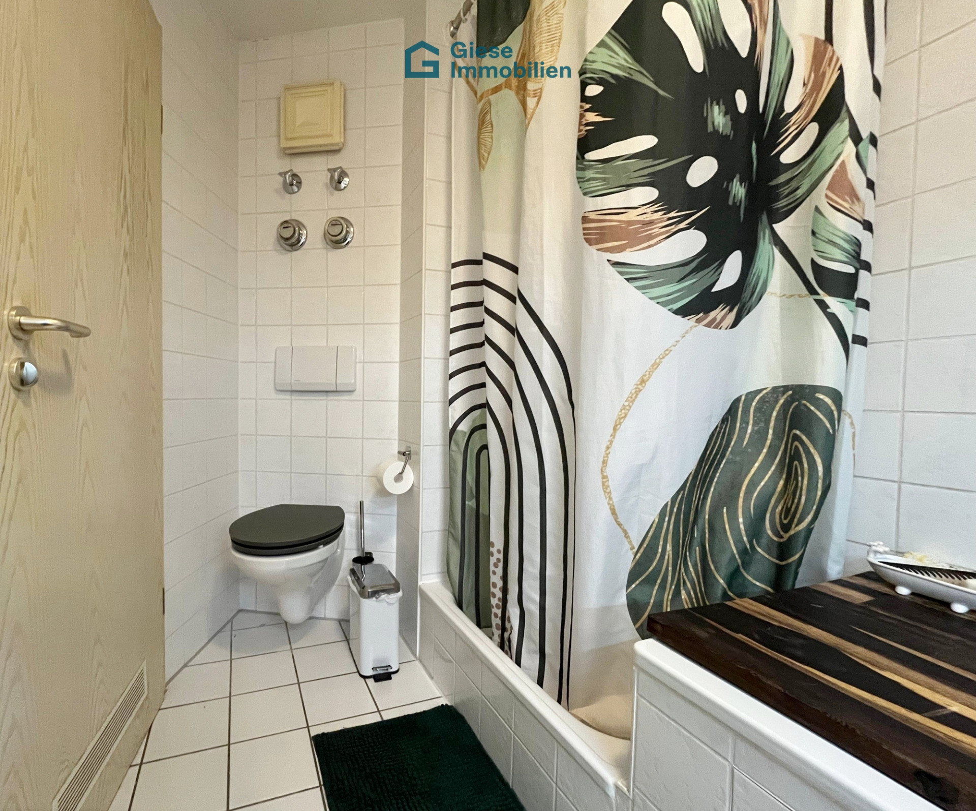 Beim Betreten der Wohnung gelangen Sie zunächst in den einladenden Flur, von dem alle Räume bequem erreichbar sind. Gleich auf der linken Seite befindet sich das Badezimmer, ausgestattet mit Badewanne und separater Dusche.