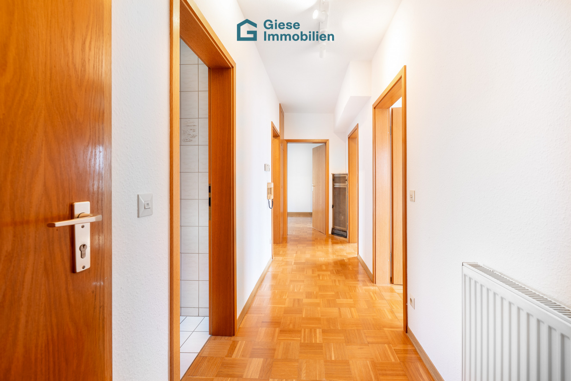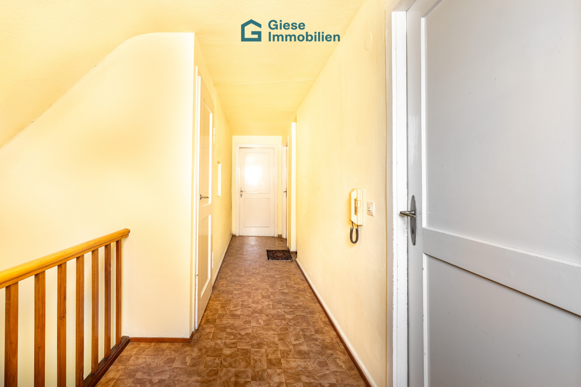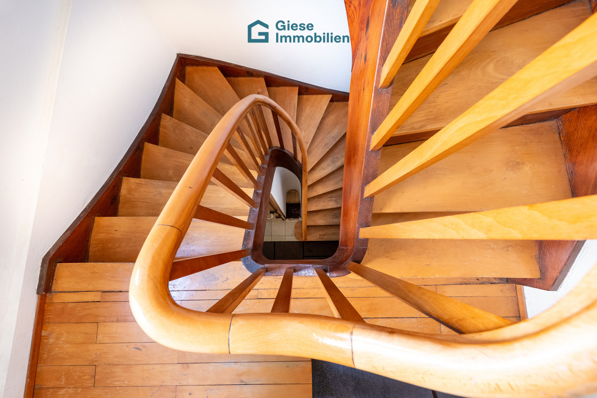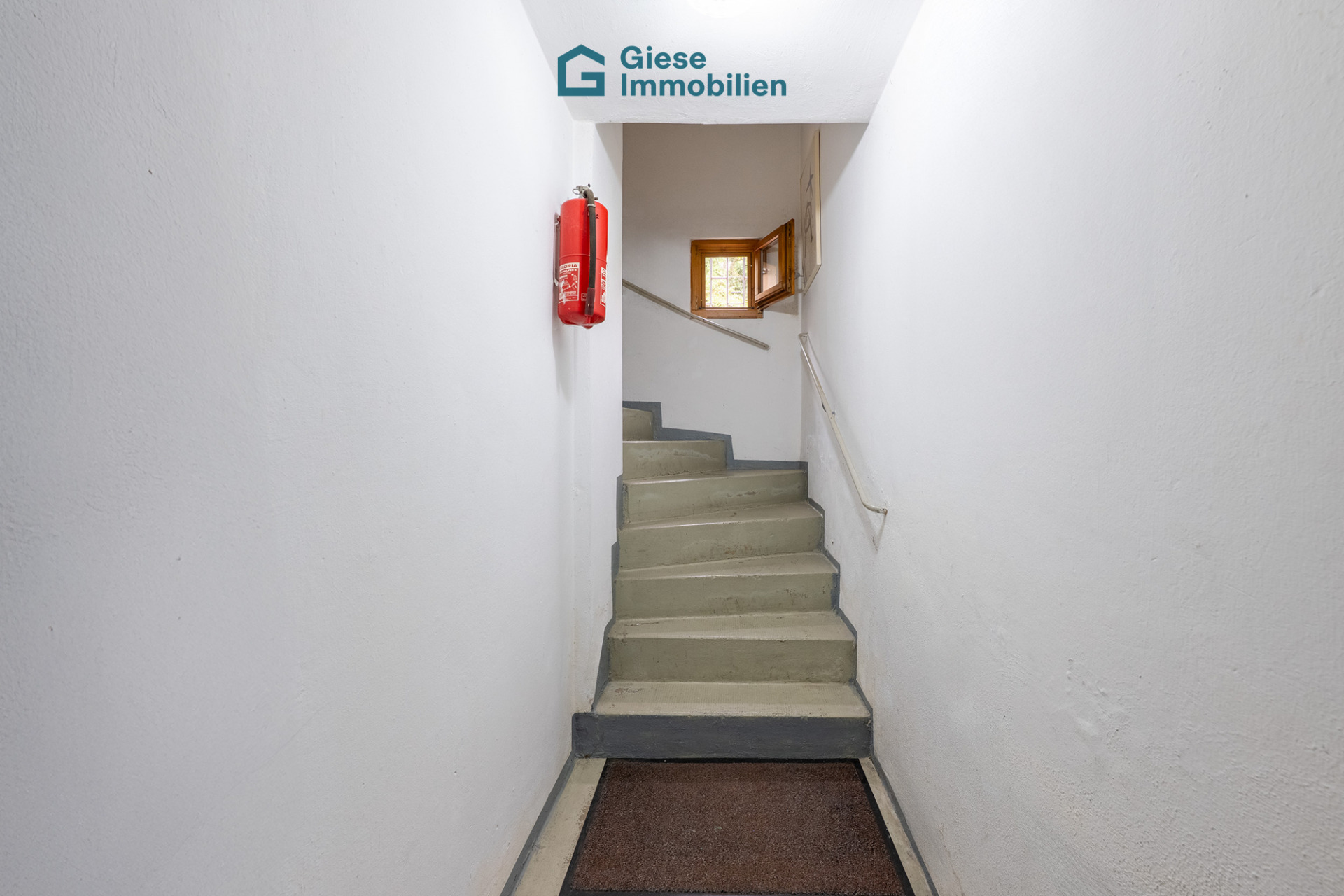 Derzeit ist die Wohnung im Erdgeschoss noch vermietet, sie wird aber demnächst frei. Durch eine Öffnung zum Treppenhaus hin, lässt sich das Haus leicht zum Einfamilienhaus umgestalten.