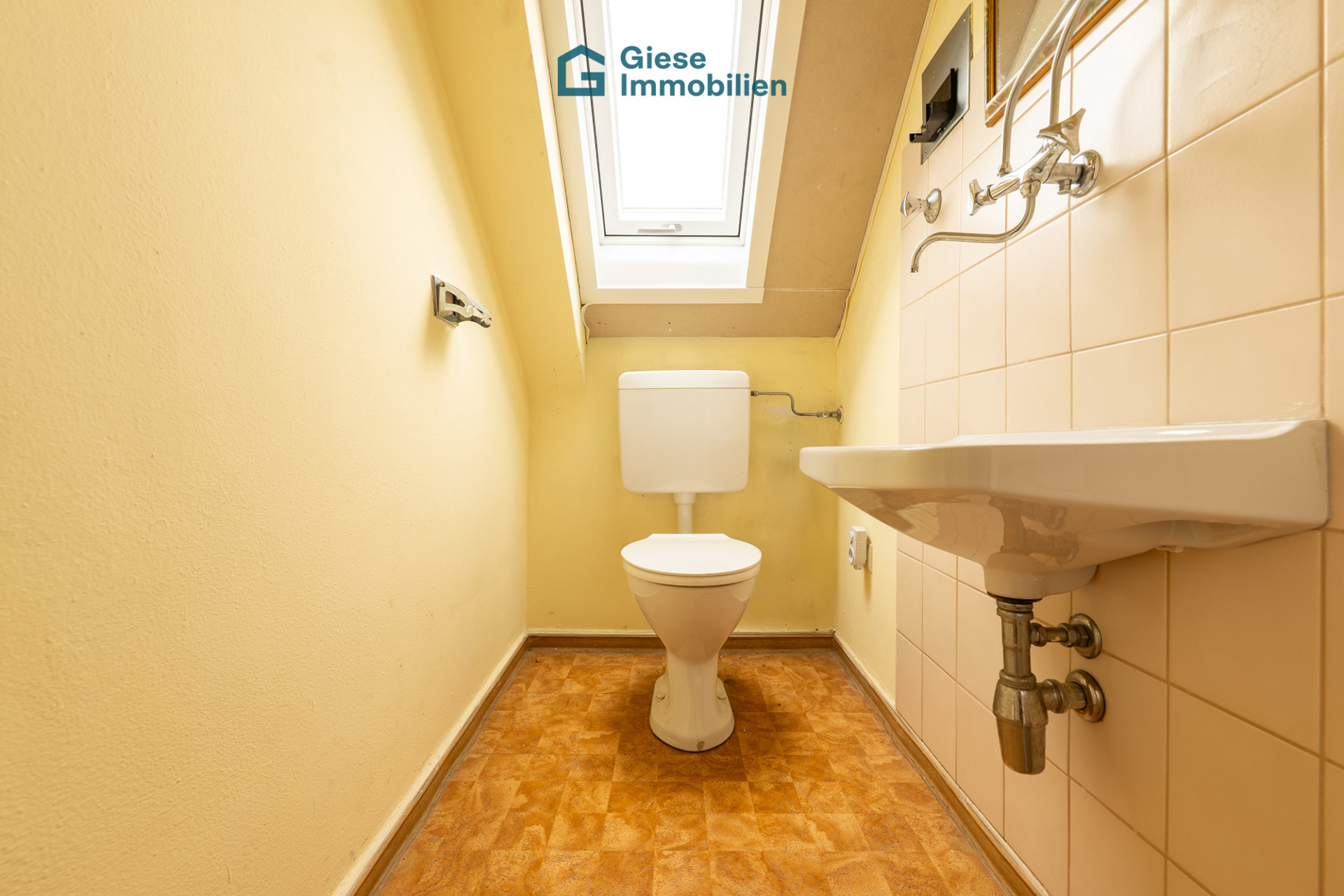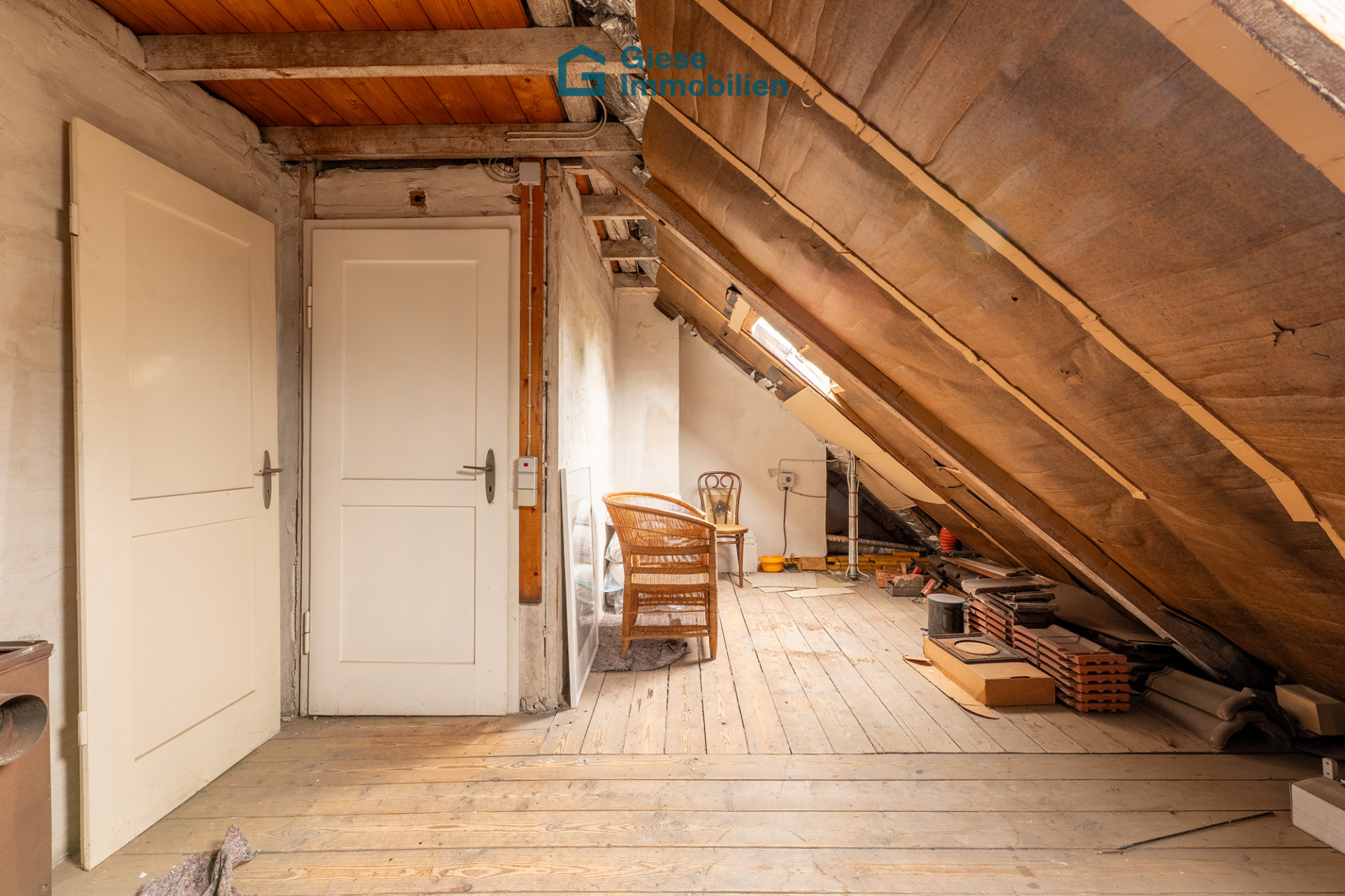 Das Dachgeschoss bietet zusätzlich Ausbaupotenzial: Hier finden sich zwei Dachkammern mit Gauben, ein Bühnenraum und ein weiteres WC mit Dachflächenfenster – ideal für Stauraum, Hobbys oder kreative Ideen.