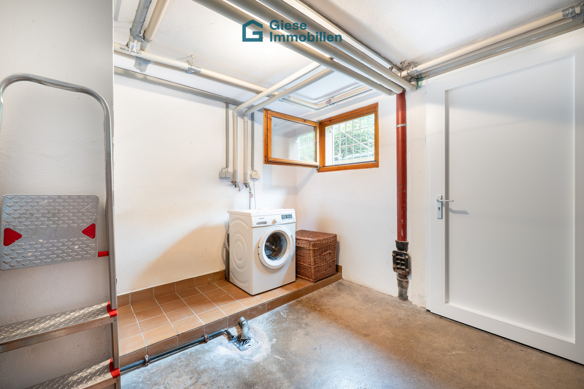 Im Untergeschoss gibt es mehrere Kellerräume, darunter ein Gewölbekeller, einen Hobbyraum sowie eine Waschküche mit direktem Zugang über eine Außentreppe in den Garten.